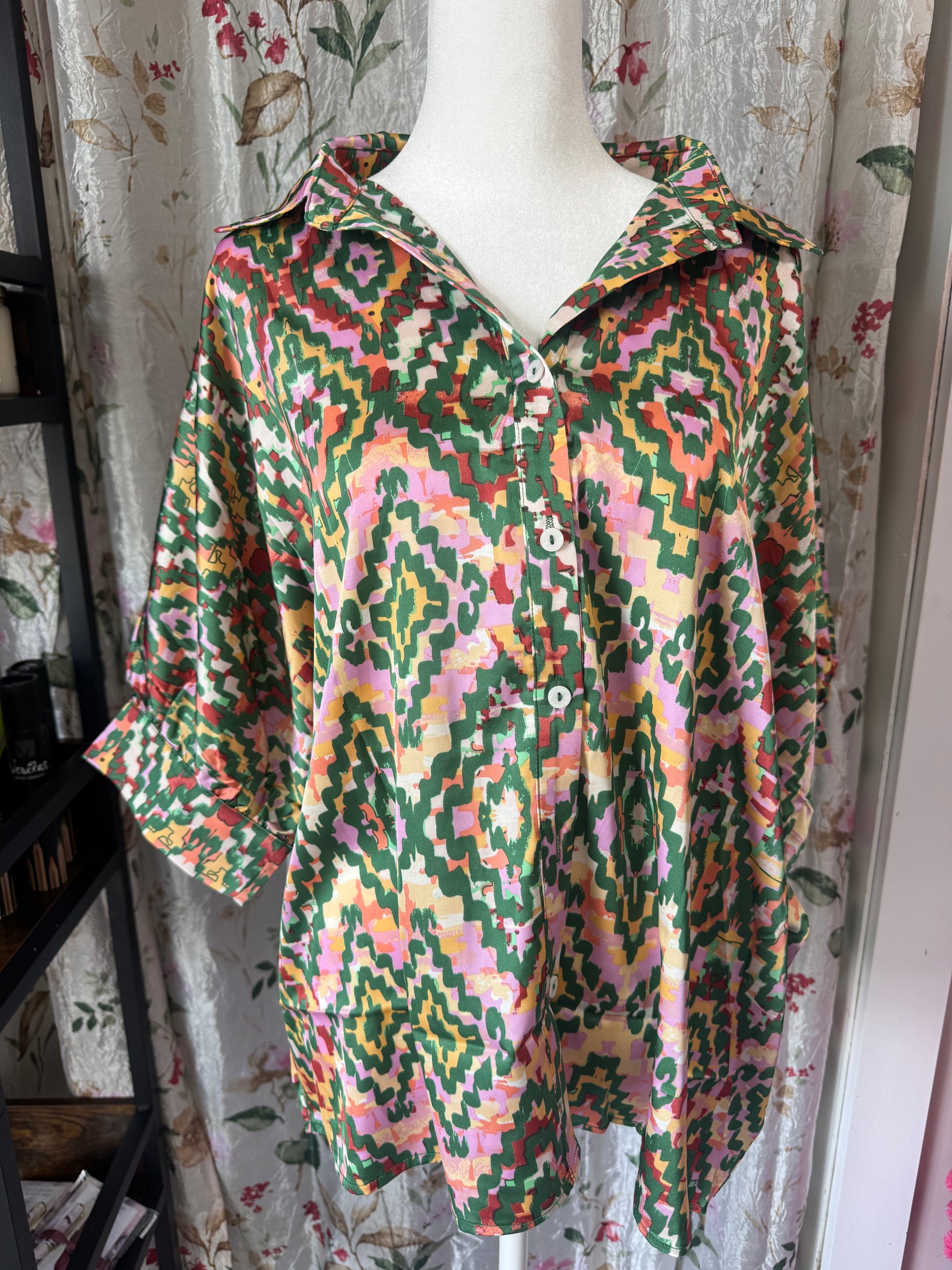 Dark Green Abstract Loose Blouse